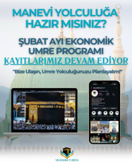 Muradım Turizm Muradım Turizm, İstanbul Fatih merkezli yapısıyla hac ve umre organizasyonları alanında güven, bilinç ve düzen odaklı hizmet anlayışını benimseyen bir firmadır. Kuruluşundan itibaren kutsal yolculuklara aracılık etmenin yalnızca bir organizasyon işi değil, aynı zamanda büyük bir sorumluluk olduğunun bilinciyle hareket eder. Bu bilinç, sunulan her hizmetin merkezinde yer alır ve tüm süreçlere yön verir. Hac ve umre ibadetleri, hayatın en özel ve manevi açıdan en derin yolculukları arasında bulunur. Muradım